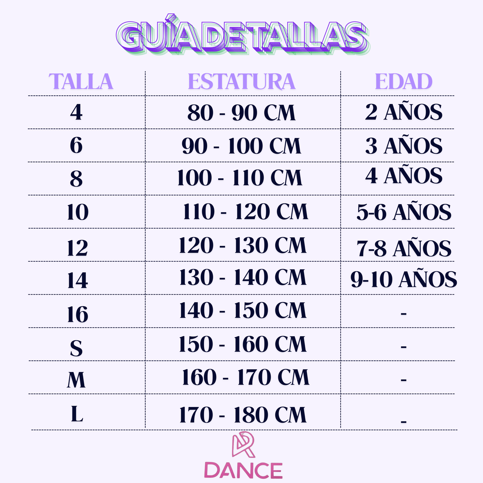 | Talla | 4, 6, 8, 12, 14, 16, S, M, L, XL |